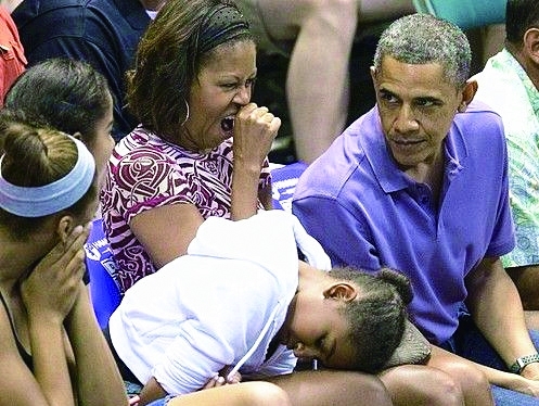 近日,第一家庭外出度假,奥巴马看球兴趣浓厚,米歇尔却哈欠连天,两人完全“不在一个节奏上”。 |
