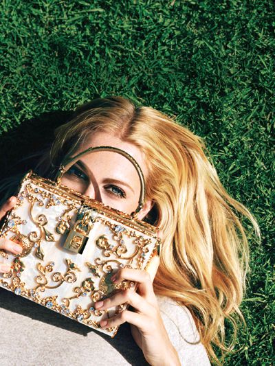 怕驾驭不了金色而一秒变土豪?不如在配饰上多下些功夫。一款金色的手包、首饰或高跟鞋都能起到画龙点睛的作用。