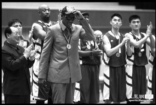 摘下墨镜的罗德曼情绪激动,似乎眼眶含泪。 |