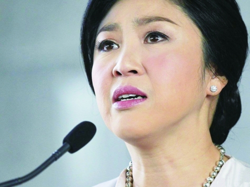 泰国总理英拉在讲话过程中情绪激动,一度含泪。 |