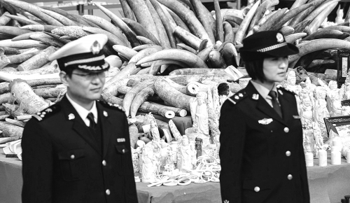 1月6日,中国国家林业局和海关总署在广东东莞公开销毁6.1吨走私象牙。这是中国首次公开销毁执法查没的象牙。 |