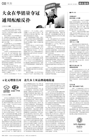 大众在华销量夺冠 通用酝酿反扑