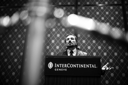 1月27日,日内瓦和谈的第三天,叙利亚反对派全国联盟发言人卢瓦伊·萨菲正在发言。 图片来源 CFP |