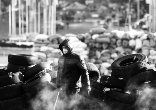 1月27日,基辅的反政府示威仍在持续。抗议者守在他们堆起的路障前。图片来源 CFP |