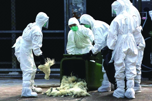 1月28日,香港,医疗人员正在捕杀家禽。据报道,香港特区政府27日晚间确认,一批自广东顺德供港的活鸡样本被证实对H7N9禽流感测试呈阳性反应。政府宣布28日上午扑杀约两万只家禽,同时暂停所有活禽交易21天。 |