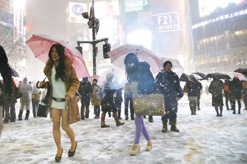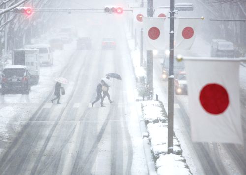 2月8~10日,日本气象厅发布大范围大雪警报,以首都东京为中心的日本关东甲信地区出现强降雪天气,造成首都圈地区大面积交通瘫痪。据日本媒体统计,大雪至少造成13人死亡,32个都道府县的1700多人受伤。很多城市迎来破纪录的降雪量,千叶市积雪达33厘米,为49年来首见;仙台市积雪达35厘米,为78年来最高。