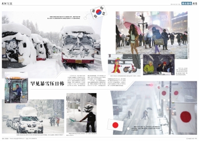 6日以来,与日本隔海相望的韩国也遭遇持续降雪。据韩联社报道,韩国江原道地方气象厅称,截至10日下午8时,江原道地区积雪量最高达到122公分。受大雪影响,韩国东海岸地区6个市、郡的166所中小学被迫停课。大雪给人们出行造成极大不便,由于积雪太厚,人们扫雪时就像在挖地道。