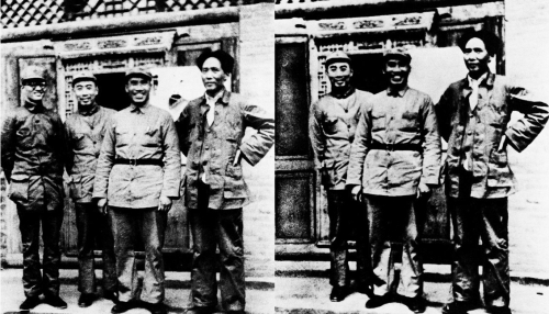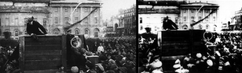 托洛茨基出现在列宁演讲的现场;相同的图像,显示托洛茨基已经被删除。