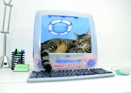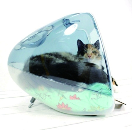 设计师将废弃的iMac显示器箱体回收,重新处理后,为猫咪、小狗等小型宠物制作了这种色彩艳丽的透明舒适小窝,非常适合技术宅主人们的爱宠。售价129美元。