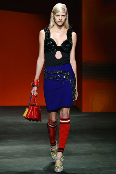 事实上,像她这样把内衣与外套混在一起的设计师大有人在:从普拉达(Prada)、伊莎贝尔·玛兰(Isabel Marant),到杜嘉班纳(Dolce & Gabbana)、巴黎世家(Balenciaga)等品牌,均推出了自己的文胸式上衣。一贯矜持的英国品牌博柏利(Burberry)也一反常态地推出透明蕾丝文胸,而路易威登(Louis Vuitton)更是在时装秀中加入忧郁的拉斯维加斯歌舞女郎造型,并通过她们展示出紧身连体内衣的风采。