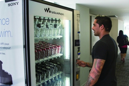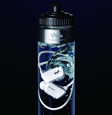 浸泡在水瓶里的索尼头戴式随身听以饮料的形式出现在街头售货机上,这是对防水特性的最佳诠释,即便有零售商以再多再花哨的文字进行渲染,都没有如此包装来得简单直白。