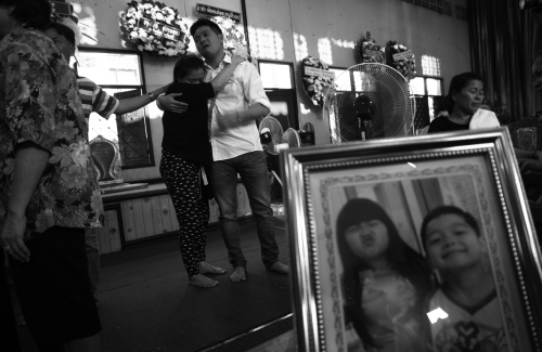 2月24日,曼谷民众为因手榴弹袭击而遇难的一对姐弟举行葬礼。姐姐6岁,弟弟4岁。 |