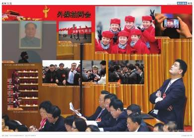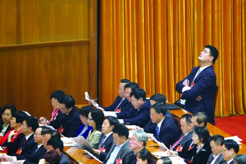 3月3日,北京,人民大会堂,姚明在会场最后一排就坐。华盖创意(Getty) |