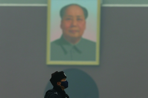 3月3日,北京,一名头戴口罩的武警士兵在天安门广场执勤。华盖创意(Getty) |