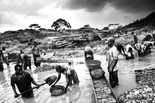 刚果(金)东北部的伊图里地区,人们在河中淘金。 |