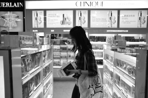 受高额利润诱惑,很多人利用留学或工作机会,从事海外代购。图为一位旅客在北京首都机场免税店选购商品。图片来源CFP |