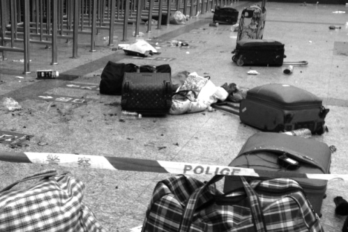 遭遇暴力恐怖袭击后,昆明火车站内一片狼藉。 |
