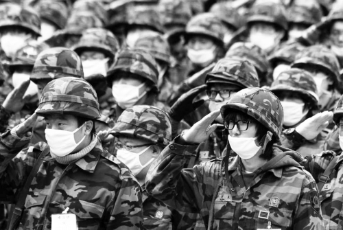韩国预备役士兵列队集合,其中不少是在校大学生。 |
