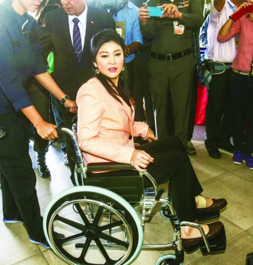 2014年3月18日,泰国中部佛统府,看守政府总理英拉乘坐轮椅抵达皇家警察学院,参加一周一次的内阁会议。据报道,英拉3月16日在清迈不慎摔伤脚踝,医生表示,她需要一到两个月才能恢复。 泰国官方的维持和平与秩序中心首席顾问、副总理兼外交部长素拉蓬3月17日宣布,将在几天内正式提议,解除正在曼谷和周围地区实施的紧急状态令,转由内部安全法令替代。 紧急状态令的有效期原本持续到本月22日,若被提前取消,军队将把街头和各角落的防护装置拆移。泰国商界之前频频呼吁看守政府早日解除在曼谷实施的紧急法令,因为处处部署军警,令人感到不安,非常影响商业氛围。 |