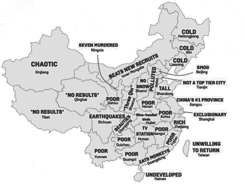 中国历来就存在“地域成见”,毕竟中国有几十个不同的省份。各地在财富、环境、民族和性格方面的客观和主观差异,造就了这些“成见”。基于这些“成见”,中国网民利用百度的搜索功能,绘制了一张不同的中国地图。