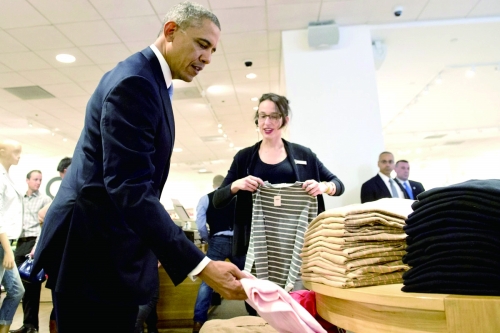 3月11日,美国总统奥巴马现身盖璞(Gap)服装店,为妻子米歇尔和两个女儿选购新衣。 |