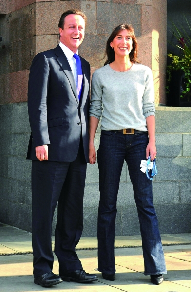 Top Shop的圆领T恤、Zara的牛仔裤让英国首相夫人萨曼莎看起来青春洋溢。 |