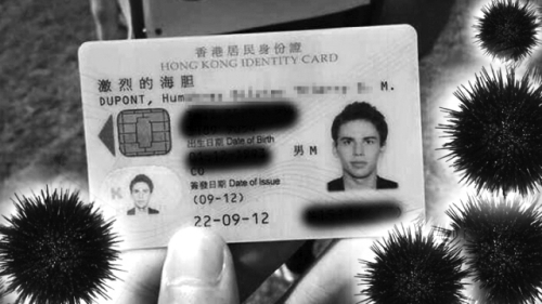 据香港《太阳报》报道,这位“海胆哥”原名Humphrey Dupont,是香港科技大学的一名法国交换留学生。他在初到香港时曾踩到海胆,受此启发,为自己取名为“激烈的海胆”。Dupont将这个别具创意在名字填写在香港身分证申请表上,没想到竟然获得香港入境处批准。现在,“激烈的海胆”已经大大方方的印在了居民身份证上,成了他的正式中文名。