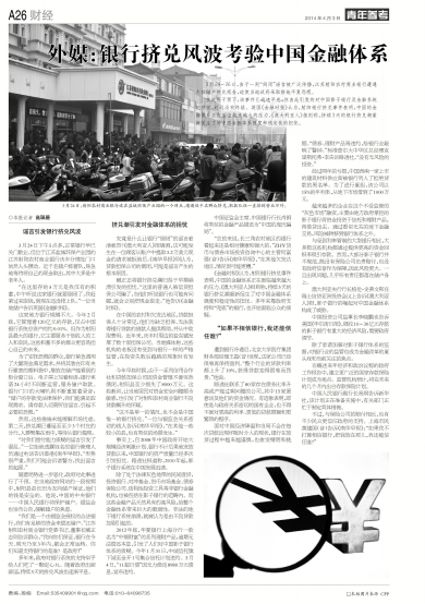 外媒:银行挤兑风波考验中国金融体系
