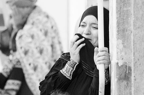 得知死刑判决,一名穆兄会被告的亲属在刑事法院外哭泣。 |
