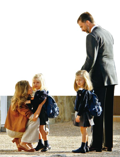 2010年9月15日,西班牙马德里,西班牙王储菲利普与王储妃莱蒂齐娅送蕾奥娜和索菲亚两位小公主去学校。这是她们第一天上学。 |