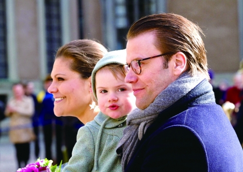 2014年3月12日,瑞典斯德哥尔摩,埃斯特拉公主和其父母维多利亚公主、丹尼尔王子出席自己的命名日庆祝活动。 |