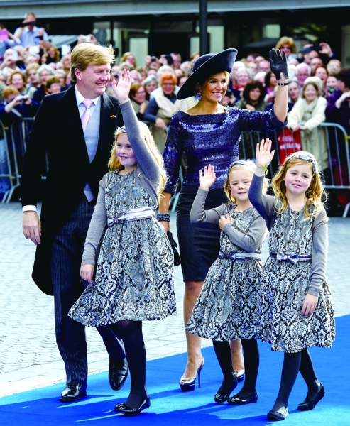 2013年10月5日,荷兰阿珀尔多伦,荷兰国王亚历山大、王后玛克希玛带着三位公主参加弟弟杰里米王子的婚礼。 |