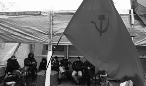 当地时间2014年4月13日,乌克兰卢甘斯克,亲俄示威者控制当地安全局。乌克兰总理亚采纽克11日启程前往东部地区,试图结束当局与东部亲俄示威者的僵持局面。他在与当地政府官员会面时承诺,向地方政府下放部分权力。 |