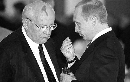 俄罗斯总统普京虽然认为苏联解体是场“灾难”,却很少公开指责苏联前领导人戈尔巴乔夫,2013年3月2日戈氏82岁生日时,普京还向他发去了贺电。 |