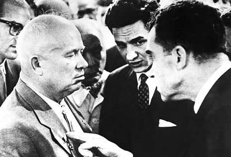 尼克松(右)在副总统任上曾与赫鲁晓夫交锋,对后者的某些习气颇为认可。 |