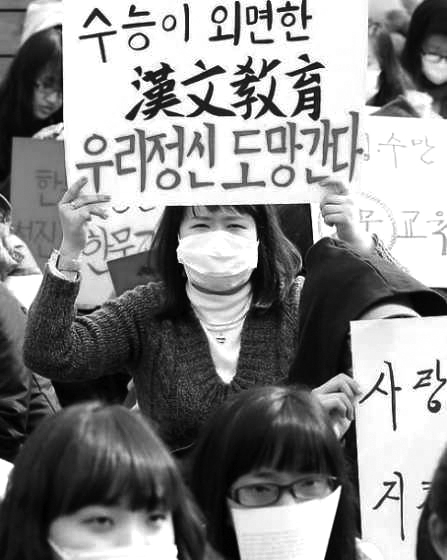 2012年,韩国教科部欲将汉字排除在高考之外,引起了一些有识之士的不满。他们组织集会,要求政府停止这一做法,恢复汉字教育正常化。 |