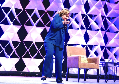 美国前国务卿希拉里·克林顿4月10日在赌城拉斯维加斯发表演说时,一名女子向她扔鞋。希拉里成功闪避,沉着应对,还拿此事开玩笑。 |
