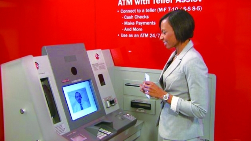2012年初,美国匹兹堡的Dollar Bank银行首次推出了具有视频功能的柜员机。2013年,美国银行继续将这种技术发扬光大,他们在ATM机上植入了实时视频通话功能,这样客户就能随时与银行专员面对面沟通,完成很多只有在上班时间才能进行的业务,比如快速申请小额贷款等。