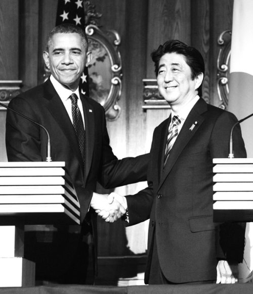 4月24日,日本东京,奥巴马访问日本,与日本首相安倍晋三举行双边会谈。 |