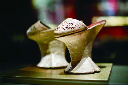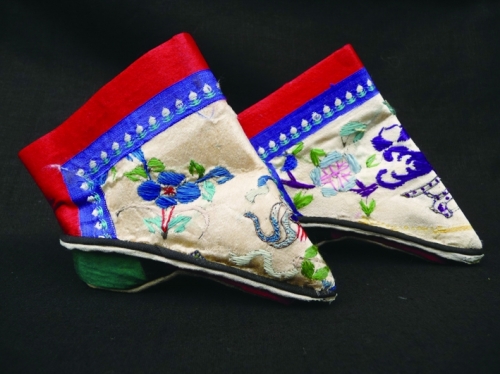 过去的一千年里,缠足深深困扰着中国女性。这一传统出现在公元八世纪(隋朝),最早是财富和社会阶级的象征。缠足之前,女性会先沐浴,然后把脚泡在蜡和植物的混合物中进行软化。接下来,女性的脚趾甲会被全部剪断,然后再把脚趾弯曲到脚板下面,并包扎固定。由于脚部变形,缠足后的女人行动困难,进行体力劳动更成了天方夜谭。于是乎,她们成了理想的“家居用品”。当时的中国男人认为缠足后的女人更有魅力。因此,一些富有的女性会经常重新包裹自己的脚,并为其塑形。