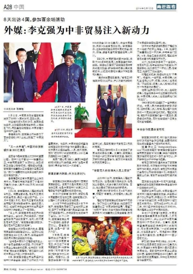 外媒:李克强为中非贸易注入新动力