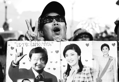 5月10日,泰国曼谷,泰国红衫军高举英拉肖像街头示威,声援政府,或与反对派对决。 |