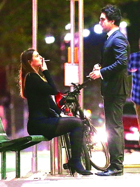 4月30日晚,澳大利亚总理阿博特的二女儿弗朗西斯和她首次公开亮相的新男友史密斯,在墨尔本被拍到在一个公交车站吞云吐雾。 |