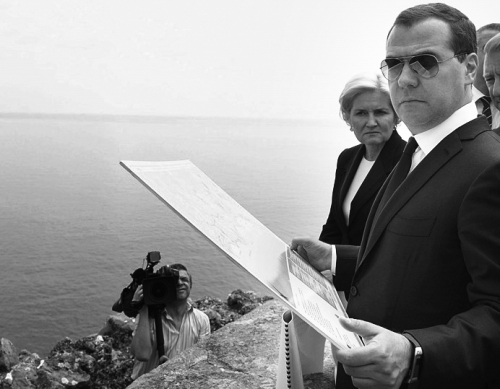 5月26日,克里米亚Gurzuf,俄罗斯总理梅德韦杰夫访问当地Artek国际儿童中心。当天,梅德韦杰夫视察克里米亚,并向当地居民发放俄罗斯护照。乌克兰视此举为“挑衅”。图片来源 CFP |