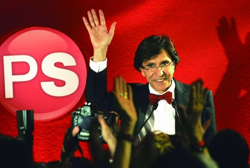 5月25日,比利时布鲁塞尔,比利时首相迪吕波在其领导的法语社会党集会上挥手致意。 5月26日,迪吕波抵达王宫,向国王递交了辞呈。据悉,菲利普国王同意了迪吕波的辞职要求,但要求他维持看守职责。比利时25日举行联邦、地区及欧洲议会选举,约780万比利时选民在全国209个选区,投票选出484名各级议会议员,但电子投票系统出现故障,遭各方诟病。截至当地时间5月26日清晨,选票仍未统计完毕。 |