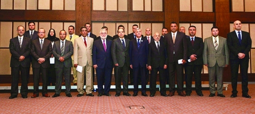 5月26日,利比亚首都的黎波里,利比亚新总理艾哈迈德·马蒂格(前排最中间的中年人)与其他政府成员合影。 在利比亚国民议会议长萨赫明的见证下,马蒂格领导的利比亚新的临时政府26日晚宣誓就职。宣誓后,马蒂格将等待现任临时政府总理萨尼移交权力。 就职仪式上,国防部长、外交部长等重要内阁成员,并未出现。利比亚国民议会25日投票通过了马蒂格提交的内阁名单。名单中,包括外交部、国防部在内的4个部门的人选,出现空缺。 利新总理内阁饱受争议,马蒂格提名的住房部长萨尔基已宣布不会加入新内阁。此外,班加西“尊严”运动的发起者、前陆军司令哈夫塔尔,拒绝承认新政府。由贾德兰领导的占据东部油田及出口港的民兵武装,也拒绝承认马蒂格政权。 |