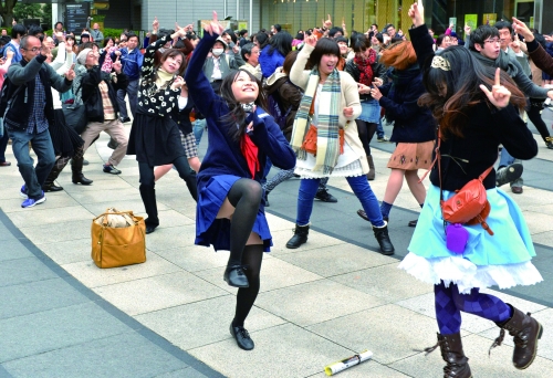 2013年11月9日,日本东京,上班族们放下手中的提包,加入到“快闪舞”的行列。 |