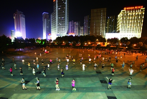 2013年7月29日,江苏淮安市民在广场跳舞健身。 |