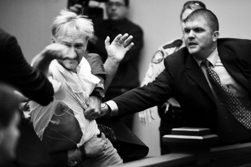 法庭上,被阿奎奎等人枪杀的约克的养父向阿奎奎冲过去,被工作人员拦住。 |