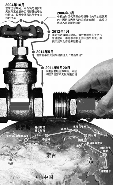 作为协议的一部分,一条连接西伯利亚天然气田与中国主要沿海城市的管道将开建,俄罗斯计划投入550亿美元用于勘探和管道建设。